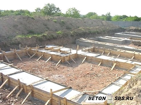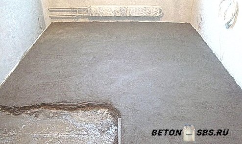 При заливке бетоном (марка не ниже М200) делается его непременное уплотнение. Для этого употребляется глубинный вибратор. Бетон имеет свойство давать усадку по мере высыхания, что сопровождается возникновением маленьких трещинок на его поверхности. Потому при заливке своими силами в течение первых пары дней плиту следует увлажнять, предотвращая пересыхание бетона. Для этого лучше пользоваться не проливкой струей воды из шланга, а способом разбрызгивания.