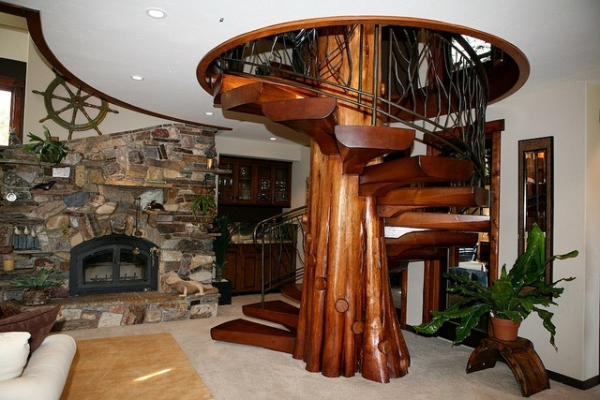 Лестница необычной формы не требует дополнительных украшений Междуэтажная лестница необходима для связи помещений дома,
