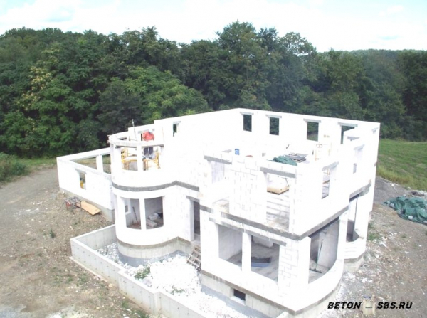 - Подготовка фундамента. Благодаря небольшому весу стен, размер фундамента может быть существенно меньше, чем для кирпичного дома. Допускается использование свайного или столбчатого решения.
